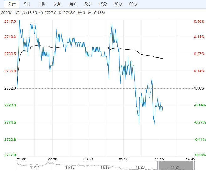 11月21日午盘,氧化铝主力合约小幅走低,目前盘内报2727元,跌幅-0.18%。海外矿雨季后发运逐步恢复,矿价预计将震荡下行;氧化铝冶炼端产能过剩格局短期难改,累库趋势持续。但当前价格临近多数厂家成本线,后续减产预期加强,且整体有色板块走势较强,追空性价比不高,建议短期观望为主。