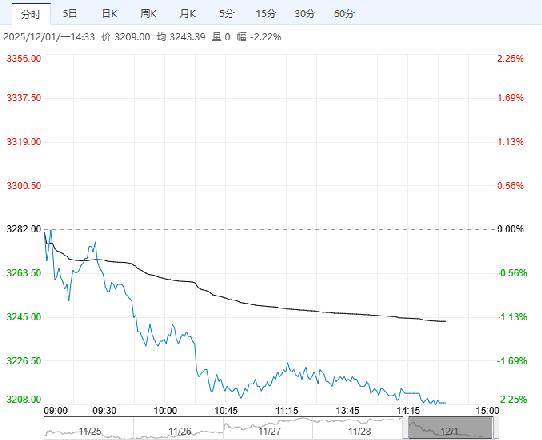 12月1日午盘,鸡蛋主力合约大幅下行,目前盘内报3208元,跌幅2.25%。蛋鸡在产存栏仍然处于高位,老鸡尚未出现超淘,高产能牵制市场价格表现,短期蛋价或处于宽幅震荡状态。