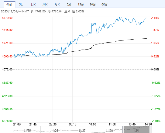 12月1日午盘,PTA期货主力合约大幅冲高,目前盘内报4766元,涨幅2.01%。供应端保持稳定,需求端存在增量,平衡表维持去库状态,上游PX支撑较强,底部价格较为稳固,预计震荡偏强。