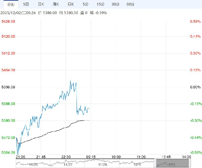 12月2日早盘,白糖主力合约小幅走低,目前盘内报5386元,跌幅-0.19%。国内新作开机陆续增加,季节性压力仍在,现货糖价下跌吸引买需,基差大幅走弱,期价已经下探至常规成本附近,限制糖价下跌,但是进口糖成本较低令郑糖跟随原糖波动运行。大供需来看,中国农业农村部11月供需报告上调产量,下调需求,预期期末库存增加,对远期而言承压。