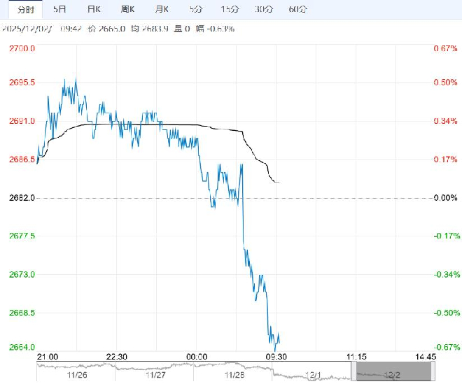 12月2日早盘,氧化铝主力合约弱势下行,目前盘内报2665元,跌幅-0.63%。海外矿雨季后发运逐步恢复,矿价预计将震荡下行;氧化铝冶炼端产能过剩格局短期难改,累库趋势持续。但当前价格临近多数厂家成本线,后续减产预期加强,且整体有色板块走势较强,追空性价比不高,建议短期观望为主。