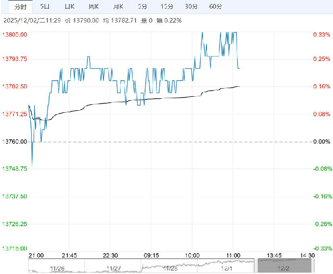12月2日早盘,棉花主力合约小幅上涨,目前盘内报13790元,涨幅0.22%。从基本面来看,前期旺季不旺,但旺季结束后需求并没有太差,下游开机率维持在中等水平,并且此前盘面价格下跌也消化了国内丰产的利空。随着商品反弹,短线有资金入场推高棉价,但暂时看不到太强的驱动,叠加套保盘压力,郑棉走出单边趋势行情的概率不高。