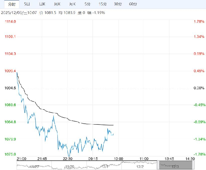 12月3日早盘,焦煤主力合约弱势震荡为主,目前盘内报1081.5元,跌幅-1.19%。盘面受基本面主导,双焦基本面边际走弱,现货降价符合预期。后期来看,煤矿供应端制约仍存,铁水高位,钢焦企业经过一段时间的原料消耗后,仍有补库需求。策略上,继续关注焦煤远月合约逢低做多机会。