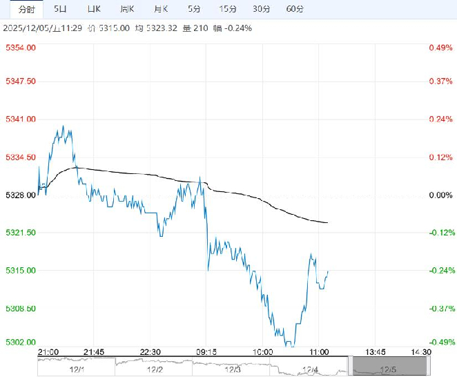 12月5日早盘,白糖主力合约小幅走低,目前盘内报5315元,跌幅-0.24%。目前预估新榨季主要产糖国产量增加,全球供需关系从短缺转为过剩,直到明年一季度,国际糖价可能难有太大的起色。叠加目前国内配额外进口利润窗口也是持续打开,大方向还是维持看空。但国内糖价已经处于相对低位,多空博弈的难度加大,趋势性行情出现的概率也变小,策略上建议逢高抛空,价格下跌后择机平仓。