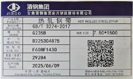 一、同意酒泉钢铁(集团)有限责任公司变更“JISCO”牌热轧卷板产品标牌;