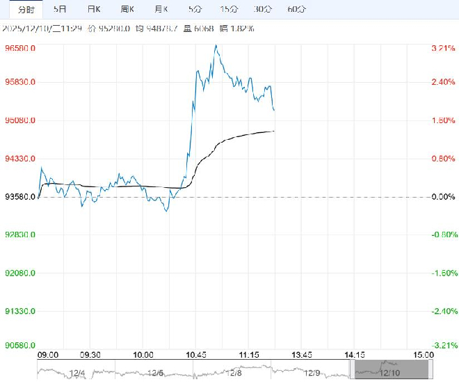 12月10日早盘,碳酸锂主力合约走势表现偏强,目前盘内报95280元,涨幅1.82%。当前市场分歧在供给释放和需求预期兑现,枧下窝复产时间及一季度消费均存在不确定性,短期或缺少明确趋势方向。同时,盘面持仓位于高位,价格大幅波动的概率较高,建议观望,后续可关注锂电板块氛围及基本面动态。