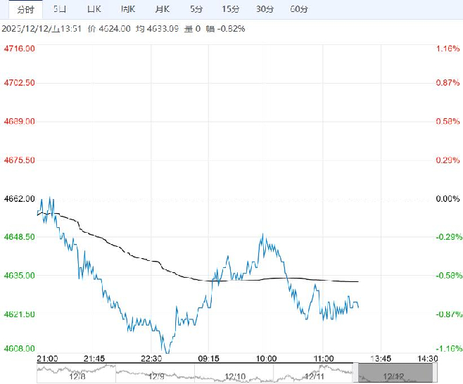 12月12日午盘,PTA主力合约弱势下行,目前盘内报4624元,跌幅-0.82%。由于库存压力和下游淡季甁片负荷难以上升。估值方面,PTA加工费在没有进一步刺激下上方空间有限,上游PX没有因基本面短期偏弱以及芳烃调油数据回落进一步压缩估值,关注预期交易的逢低做多机会。