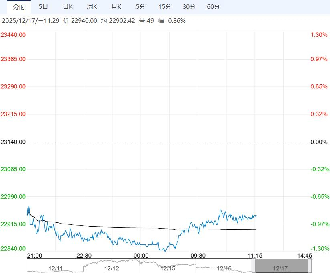 12月17日早盘,沪锌主力合约弱势下行,目前盘内报22940元,跌幅-0.86%。受供应端约束影响,国内精炼锌社会库存继续去化。上周,精炼锌社会库存下降1.21万吨。宏观与基本面共同推动锌价突破震荡区间,但消费端的拖累和明年过剩预期未变,谨慎追涨。