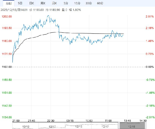 12月18日早盘,纯碱主力合约走势表现偏强,目前盘内报1189元,涨幅1.80%。随着价格跌至低位,短期市场情绪边际略改善下,盘面小幅反弹,但纯碱市场中长期逻辑仍是交易供大于求预期,中期趋势仍以逢反弹偏空思路对待。