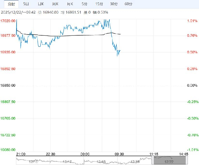12月22日早盘,沪铅主力合约震荡走高,目前盘内报16940元,涨幅0.53%。上周电解铅产量尚可维持稳定生产,本周周电解铅产量或小幅下滑。云南地区某中大规模冶炼厂检修结束后上周继续提产,另一小规模冶炼厂生产恢复小幅提产。其他地区冶炼厂维持正常开工,华东地区此前停产检修的冶炼厂暂未恢复,预期将于12月底恢复。