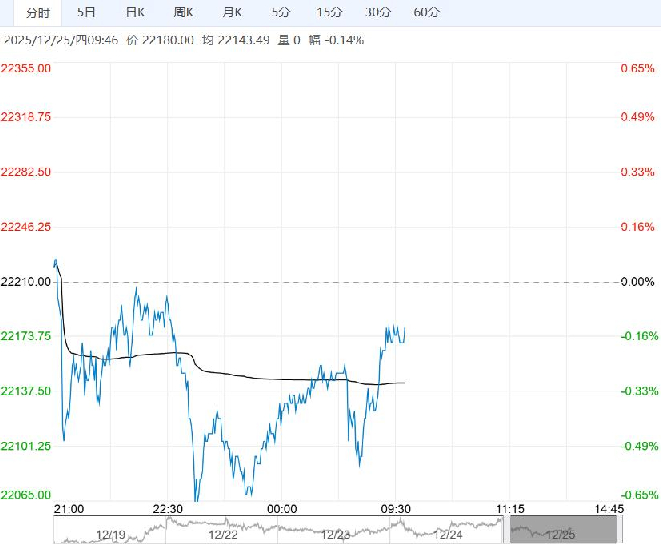 12月25日早盘,沪铝主力合约小幅走低,目前盘内报22180元,跌幅-0.14%。供需上,市场对26年预期较为积极,短期价格回升打压需求,但库存仍小幅回落;内外价差走阔,海外强势支撑国内走势。整体上供需矛盾不大,跟随宏观情绪为主。中长期仍维持逢低入多策略, 短期期价遇前高回落,此前提示的低多逢高离场。