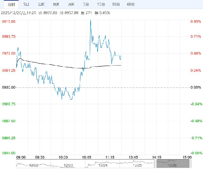 12月26日早盘,红枣主力合约震荡走高,目前盘内报8970元,涨幅0.45%。当前产区收购已基本收尾,库存呈现“旧季结转货源与新季上市货源叠加”的特征,供应端增量与需求端平稳形成“供增需稳”的格局,库存压力对市场行情形成阶段性压制,陈货低价销售挤压新货销售空间;而销区即将进入消费旺季,后续需重点跟踪下游走货节奏。