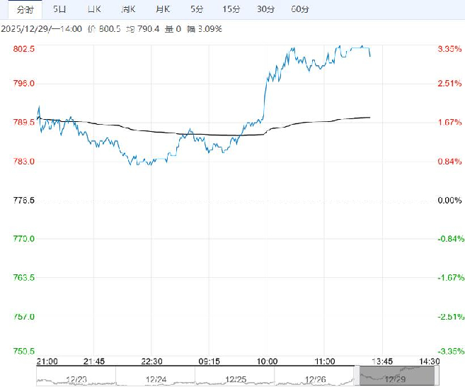 12月29日午盘,铁矿石主力合约大幅上行,目前盘内报800.5元,涨幅3.09%。铁矿石受得益于澳矿缺少的结构支撑,但受制于巴西矿高供给的影响,有驱动而无估值,核心还是下游需求超预期,未来则要看实际复产和去库的幅度,理论上铁矿石依然存在利多支撑,仍适合买入。