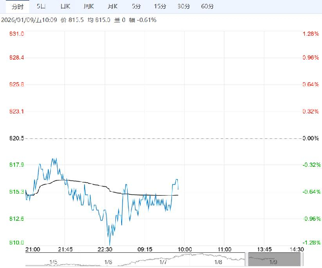 1月9日早盘,铁矿石主力合约弱势下行,目前盘内报815.5元,跌幅-0.61%。需求端,淡季终端需求偏弱,钢厂盈利有所走弱,铁水产量继续增加。钢厂进口矿库存连续增加,未来仍有一定冬储补库预期。商品市场情绪有所反复,铁矿自身基本面较为宽松,未来需要警惕高位波动加剧的风险。