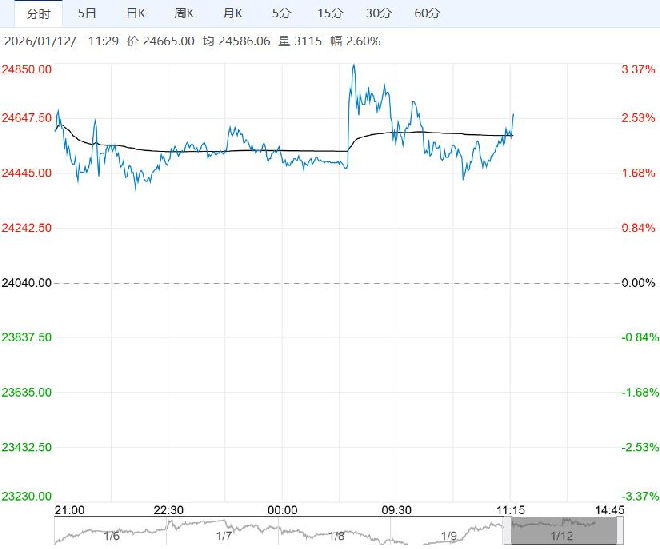 1月12日早盘,沪铝主力合约大幅上行,目前盘内报24665元,涨幅2.60%。供需矛盾上,中长期叙事逻辑仍占主导,国内短期需求转弱未明显负反馈;内外与铜铝比价显示估值有修复。维持逢低入多策略,短期顺势持有,但波动率触及高位谨防风险, 关注叙事逻辑持续性及前高区域压力。