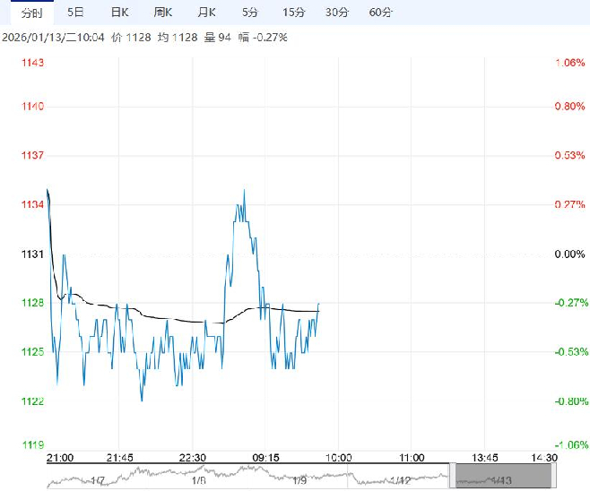 1月13日早盘,玻璃主力合约小幅走低,目前盘内报1128元,跌幅-0.27%。当前产业信心受盘面波动影响显著,中游期现库存较高有待消化。后续关注产线冷修预期落实情况,若减产执行顺畅,则供需格局有望继续改善。此外跟踪区域燃料升级进展、中下游采购情绪等。