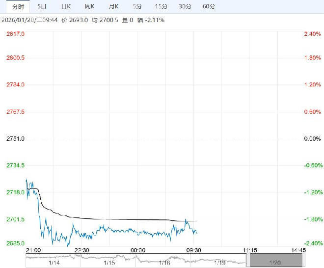 1月20日早盘,氧化铝主力合约大幅下调,目前盘内报2693元,跌幅-2.11%。氧化铝企业开工产能维持高位,加上进口窗口持续开启,国内供应过剩持续。氧化铝价格虽然处于下行通道,但成本端烧碱及矿价也在下行,且未来仍有下跌预期,成本支撑预期下移,降低企业减产意愿。氧化铝过剩不改,期价继续向下寻找支撑。