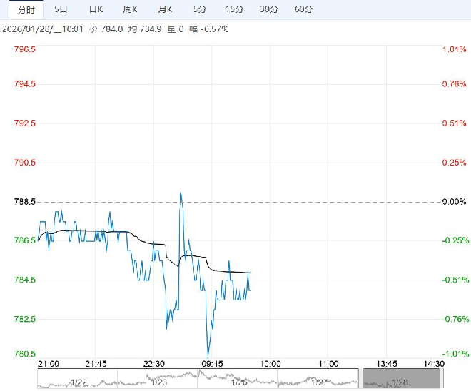 1月28日早盘,铁矿石主力合约弱势下行,目前盘内报784元,跌幅-0.57%。最近市场关注买单出口加严的问题,对需求有一定担忧,市场缺乏足够持续的买入情绪,淡季现实阶段铁矿石依然维持过剩预期。短期基差有所收敛,现货出现承压,补库逻辑的支撑力度减弱,负反馈仍要靠炉料下跌实现,节前市场动态平衡,2月前仍考虑已买入为主。