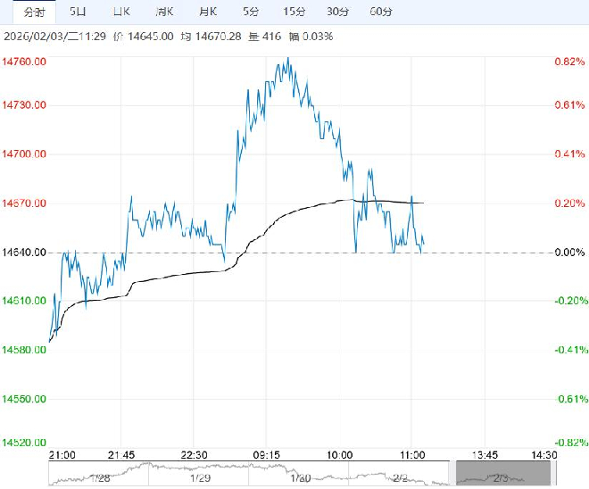 2月3日早盘,棉花主力合约小幅上涨,目前盘内报14645元,涨幅0.03%。受多头资金进场驱动,叠加美元走弱提振大宗商品市场,美棉郑棉双双放量上涨。当前,市场下游纺织厂节前补库有所支撑,现货走货较为顺畅,但是考虑到纺织厂补库即将进入尾声,还需观察后续需求支撑力度。