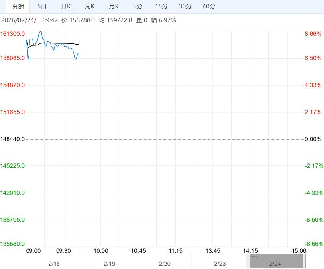 2月24日早盘,碳酸锂主力合约维持高位震荡,目前盘内报158780元,涨幅6.97%。目前库存已脱离绝对高位,阶段性供需错配对于价格下方短期有支撑,叠加外部地缘冲突频发背景下,战略性矿产重要性突显,市场对于锂资源外部稳定供应以及流动性持续担忧,碳酸锂下方支撑仍强,不过短期内波动或加大,注意控制风险。
