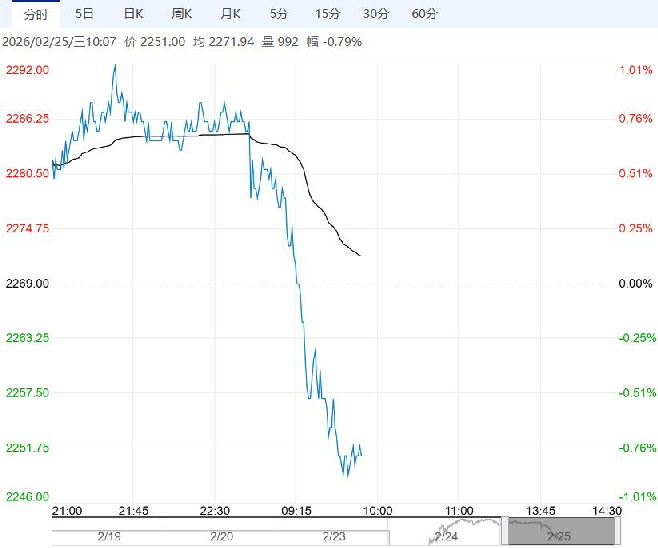 2月25日早盘,甲醇主力合约弱势下行,目前盘内报2251元,跌幅-0.79%。需求端,当前江浙地区MTO装置负荷不高,春节后有恢复预期。综合来看,后续港口会进入到去库阶段,但美伊局势持续紧张,将导致甲醇价格大幅震荡,建议投资者控制仓位规避风险。