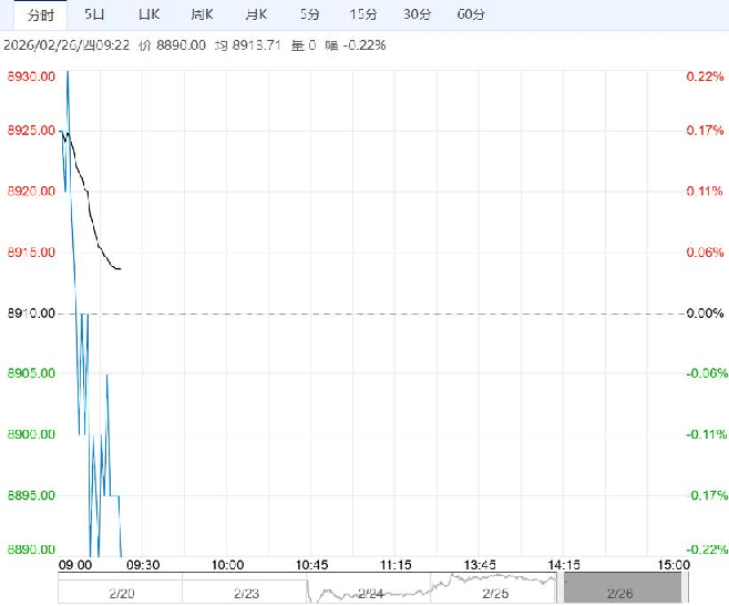 2月26日早盘,红枣主力合约小幅走低,目前盘内报8890元,跌幅-0.22%。新旧季现货叠加供应面宽松,短期供需格局难改,盘面进入类似25年初的局面,窄幅区间震荡,期现货价格进入低价区后利空明显钝化,建议投资者震荡区间轻仓波段对待,谨慎操作注意风险。
