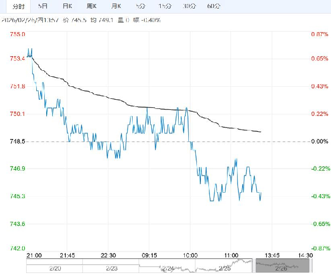 2月26日午盘,铁矿石主力合约弱势下行,目前盘内报745.5元,跌幅-0.40%。一季度是铁矿供应常规下滑的季节,叠加市场对于3月加速复产的预期较高,预计矿价跟随成材运行,在需求实际启动前后有望缓慢筑底。策略方面,铁矿供需结构或有修复空间,关注轻仓做多的机会。