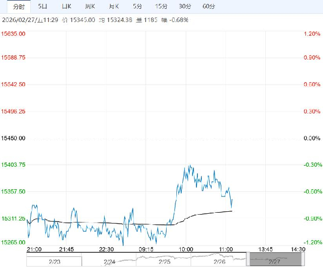 2月27日早盘,棉花主力合约弱势下行,目前盘内报15345元,跌幅-0.68%。国内商业库存消化良好,未来棉花供给偏紧的预期仍在延续,尤其是新疆商业库存降速较快。短期棉花需求反馈或一般,继续关注后续金三银四的需求表现。短期郑棉冲高回落之后,建议谨慎操作。