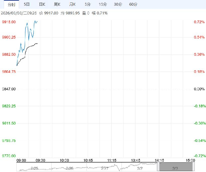 3月3日早盘,苹果主力合约震荡走高,目前盘内报9917元,涨幅0.71%。随着各大产区走货量小幅上升,库存总量持续走低,对盘面形成一定支撑。短期受库存总量偏低和好果率低支撑,重点跟踪节后库存去化、现货报价及交割品货源。中长期,关注天气变化,如天气正常,则10合约预备丰产预期。