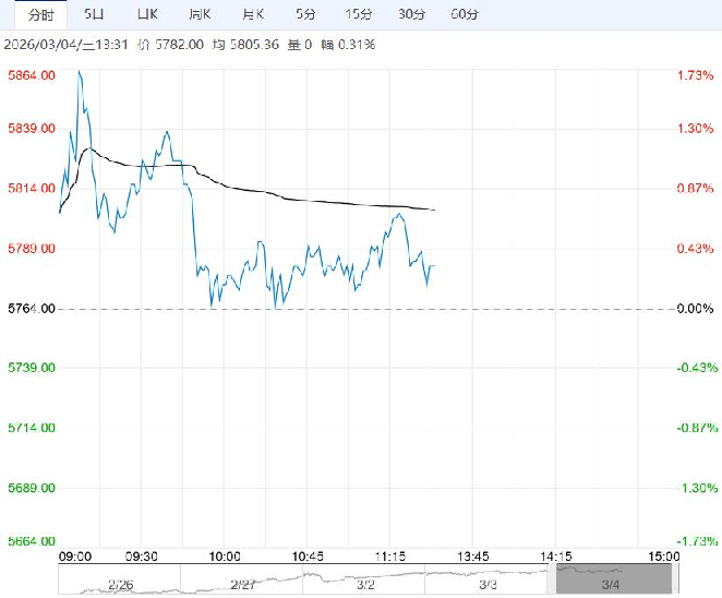 3月4日午盘,硅铁主力合约小幅上涨,目前盘内报5782元,涨幅0.31%。金属镁产量环比继续抬升,次要需求边际抬升,需求整体仍有韧性。硅铁供应变动不大,库存小幅下降,市场对下个月会议政策有较强预期,关注国际冲突相关消息,大概率偏强震荡。
