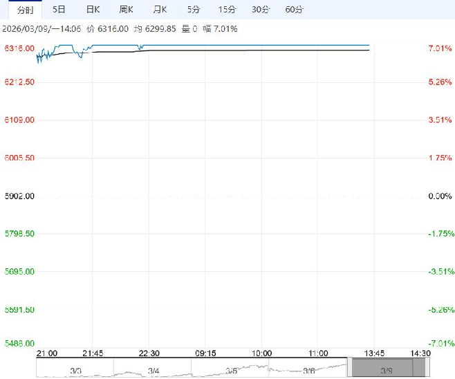 3月9日午盘,PTA主力合约大幅上行,目前盘内报6316元,涨幅7.01%。估值方面,PTA加工费回落,短期预期回调到位,PXN被动压缩至偏低水平,后仍然有估值上升的空间,在中东地缘持续发酵的情况下,预期PXN仍然有大幅上升的空间,中期关注跟随原油逢低做多的机会。