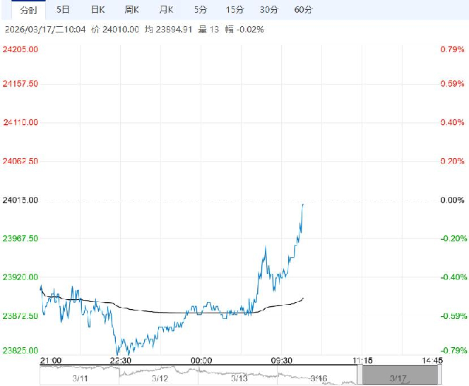 3月17日早盘,沪锌主力合约小幅走低,目前盘内报24010元,跌幅-0.02%。国内社会库存累库幅度较高,已高于过去两年同期水平。伊朗冲突长期化概率提升,油价处于相对高位,市场存在通胀担忧,降息预期下调后有色金属走势承压。当前沪伦两市锌持仓均大幅下滑,投机情绪减弱,交易重心逐步回归产业弱现实,锌价后续存在向下突破风险。