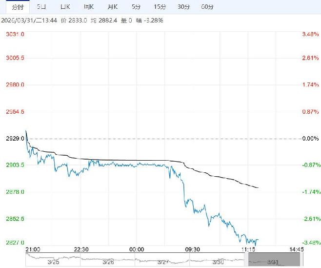3月31日午盘,氧化铝主力合约大幅下行,目前盘内报2833元,跌幅-3.28%。氧化铝冶炼端短期检修增加导致供应转紧,但中长期过剩格局仍难以改变。当前宜采取观望策略,尽管矿端预期改善,但当前期货价格升水较高,中长期过剩格局和注册仓单高企仍会持续压制盘面价格。