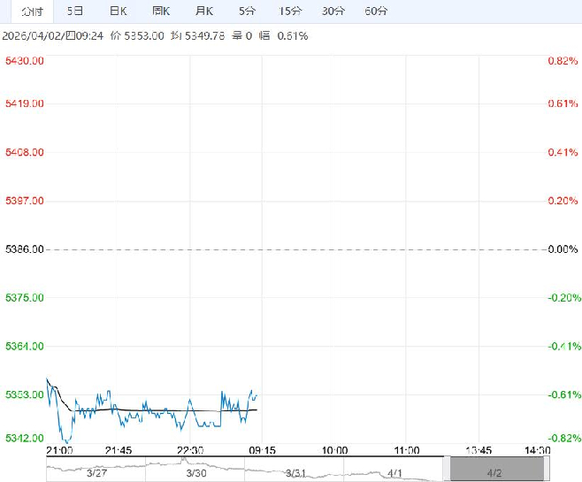 4月2日早盘,白糖主力合约弱势下行,目前盘内报5353元,跌幅-0.61%。国内市场,北方甜菜糖压榨结束,产量基本符合预期,甘蔗糖产量超预期,国内产量预期在1200万吨附近,当前糖市处于供强需弱态势,且外盘原糖价格持续下跌,短期郑糖价格跟跌为主。