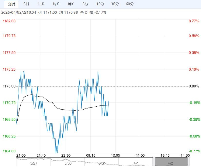 4月2日早盘,纯碱主力合约小幅走低,目前盘内报1171元,跌幅-0.17%。当前纯碱企业库存高位,中游货源压力也相对偏高,中上游出货或对价格形成压制。短期纯碱期货盘面走势偏弱,市场对外部宏观及地缘政治因素交易也逐渐回落,后期关注气温回升后企业检修力度能否给市场带来托底效应,另需关注纯碱库存变化、下游产能变化、国际局势及商品市场整体情绪。