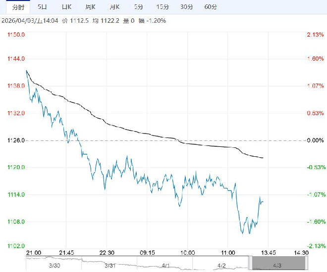 4月3日午盘,焦煤主力合约弱势震荡为主,目前盘内报1112.5元,跌幅-1.20%。需求端,焦企刚需采购、补库谨慎,钢厂铁水复产不及预期,焦煤消耗偏弱,焦企及港口库存累积,资金离场拖累盘面大幅走弱,建议短线偏空操作,关注1110支撑。