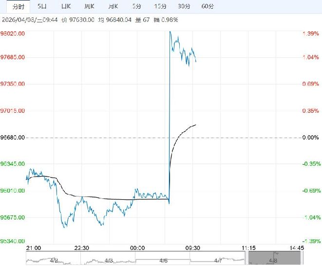 4月8日早盘,沪铜主力合约震荡走高,目前盘内报97630元,涨幅0.98%。供应端,矿端紧张叙事依然坚实,上周TC深度负值再次刷新新低,成本支撑逻辑坚固。需求端,国内社会库存已连续数周去化,下游加工企业开工率回升,需求逐步复苏。短期看,停火协议提振风险偏好叠加美元走弱,或为铜价提供上行驱动力。
