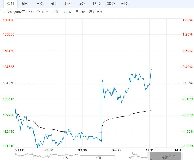 4月8日午盘,沪镍主力合约小幅上涨,目前盘内报134520元,涨幅0.35%。短期来看,霍尔木兹海峡封锁导致美国长期通胀预期上行,风险资产普遍承压,预计镍价亦将跟随走弱。但中期来看,全球镍元素供需改善趋势确定,镍价底部支撑较强,下跌空间有限,不建议做空。