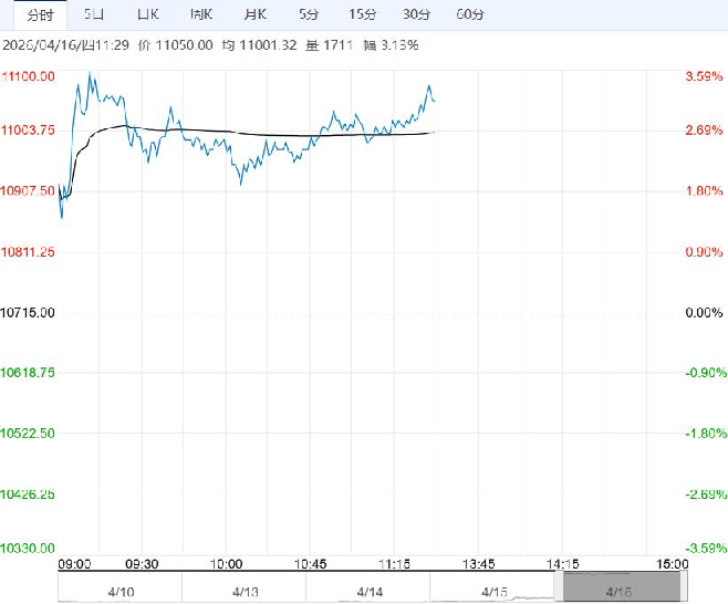 4月16日早盘,生猪主力合约维持高位震荡,目前盘内报11050元,涨幅3.13%。昨日全国生猪价格跌势放缓,部分区域价格稳中伴涨,主因部分规模企业缩量挺价。价格仍根据交易变化震荡为主。价格低位后,市场挺价情绪增强,价格有止跌迹象,但终端需求依旧疲软,昨日主力合约触及涨停,但依旧缺乏持续利好,短期小周期情绪反弹。重点关注养殖端出栏量及能繁母猪去化程度。