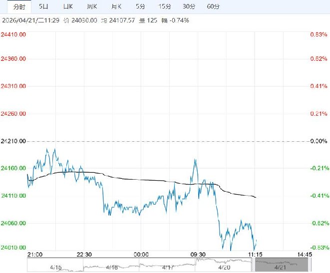 4月21日早盘,沪锌主力合约弱势下行,目前盘内报24030元,跌幅-0.74%。需求上,暂时没有大矛盾,现货端贴水走阔,整体偏弱,库存依旧维持水位较高。展望未来,上周高锌价下游采买基本中断导致异常累库,本周可能出现上方空头压力持续打压,建议策略上尝试逢高沽空,以及矿端偏紧预期计价后的回调。
