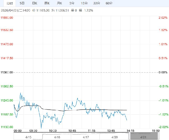 4月21日午盘,生猪主力合约维持低位震荡,目前盘内报11165元,跌幅-1.72%。昨日全国大部分地区猪价偏弱调整。价格快速走高后,终端接受度差,且供大于求未改变,涨价难以持续。前几日涨价幅度过大,需求跟进不足,短期可能出现回调,多单谨慎参与。