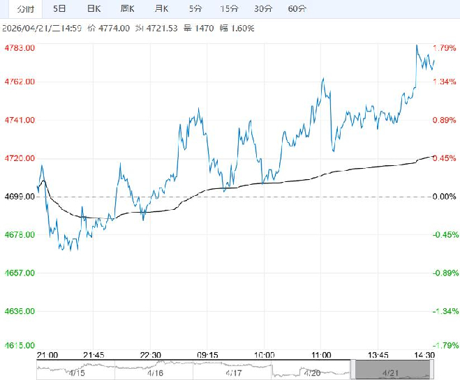 4月21日午盘,乙二醇主力合约走势表现偏强,目前盘内报4774元,涨幅1.60%。近期中东乙二醇装置多数处于停车状态,港口到港减少较多,发货增加,4月进口或大幅缩减,港口库存持续去化,下方支撑偏强。当前地缘局势仍存变数,短期乙二醇价格或宽幅震荡,考虑回调参与,持续关注中东供应情况,后续弹性空间仍取决于春检节奏和需求兑现情况。