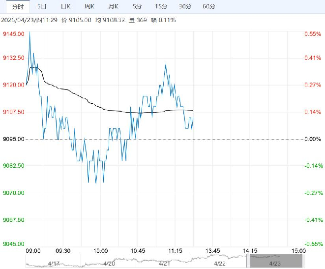 4月23日早盘,红枣主力合约小幅上涨,目前盘内报9105元,涨幅0.11%。05今天有正套资金进场,如果接货实盘压力将缓解,59形成联动态势,近期农产品表现偏强,量化资金偏多,09合约9100往上从基本面上看找不到太多理由,所以盘面近期反弹非产业所为,但考虑到绝对低价区间,建议多观望少参与。